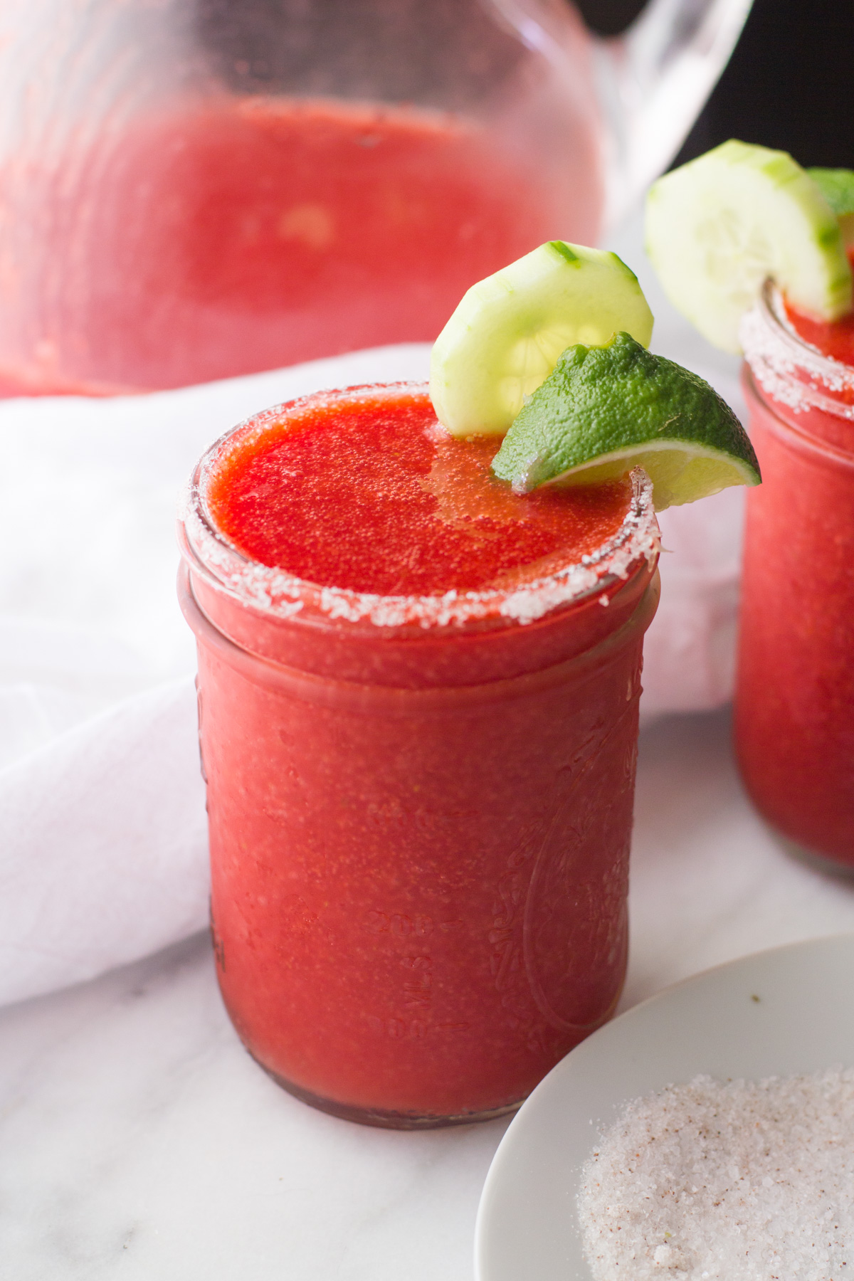 - As well, chill your glass for at least 30 minutes. This makes rimming it easier and keeps your drink super cold.