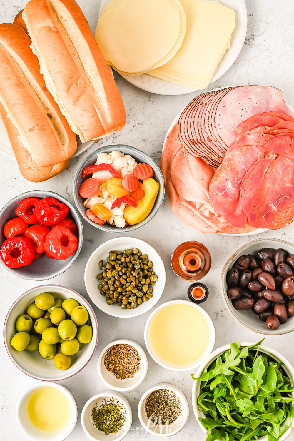 It’s totally fine to purchase the olive salad (This is Central Grocery’s original olive salad and this is Boscoli brand olive salad that I’ve used that is cheaper.). When I started making this sandwich 25 years ago I couldn’t always get olive salad so I developed a recipe for it. I included it below and it’s pretty dang close to the original.