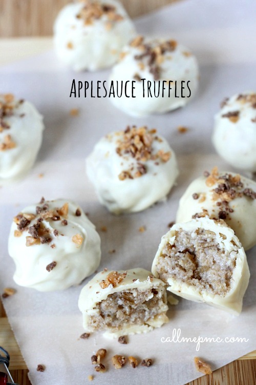 Not wanting to submit flat-topped muffins to this prestigious challenge, I turned them into Apple Sauce Truffles! I know, genius! 😉