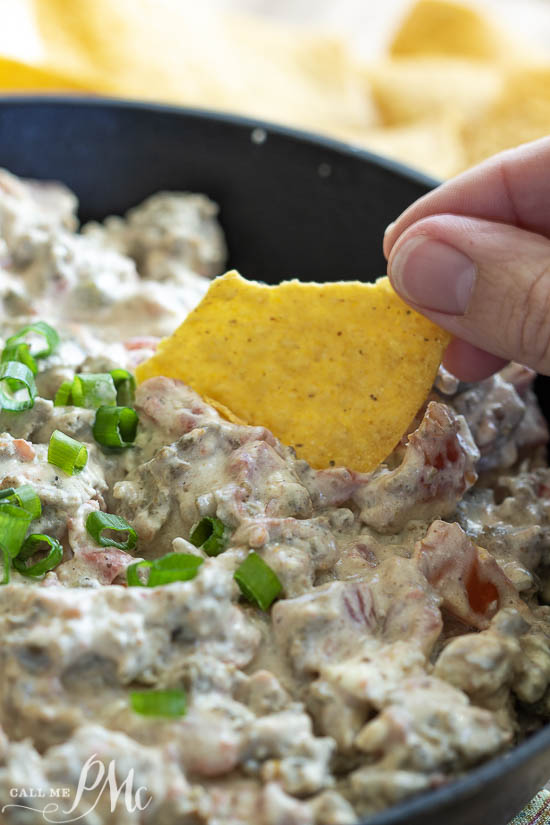 If you’re looking for a go-to dip, this is your recipe! I make this for tailgating and parties and there is never any left. The secret is the trifecta of creaminess from the sour cream,