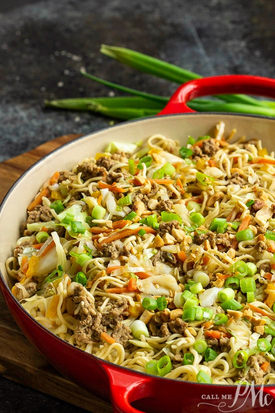 Sriracha Ramen Noodle Recipe actually tastes like the inside of an egg roll. After all, it does have the same ingredients. Adding ramen noodles makes it hearty and filling. Additionally, this recipe makes a quick and super easy dinner recipe.
