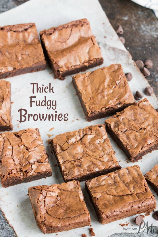 Thick Fudgy Ultimate Brownies are thick, soft, and gooey, with that paper-like crackly top. They are super chocolatey and very indulgent. And worth every minute of extra cardio it takes to burn them off!
