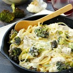Add pasta, chicken, and broccoli and stir to coat all with white sauce.