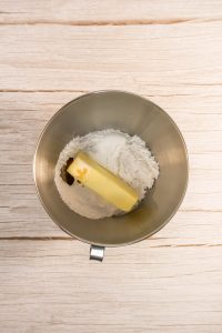 - For the frosting – in the bowl of a stand mixer, combine the softened